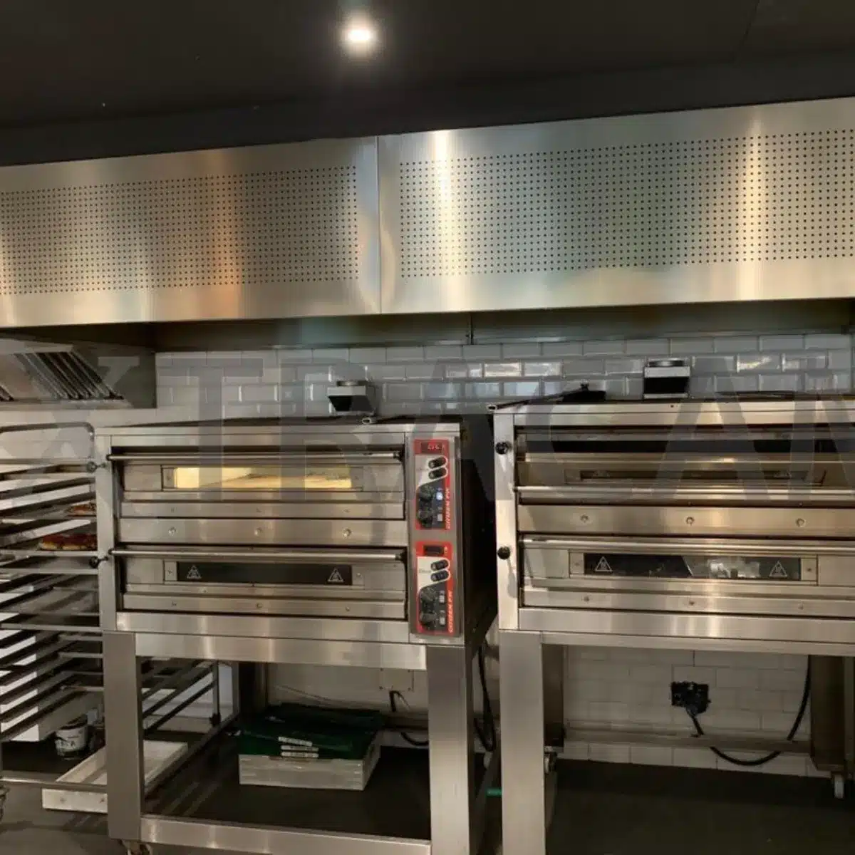 Instalación de boquillas y sensores automáticos bajo la campana para controlar incendios de forma inmediata.
